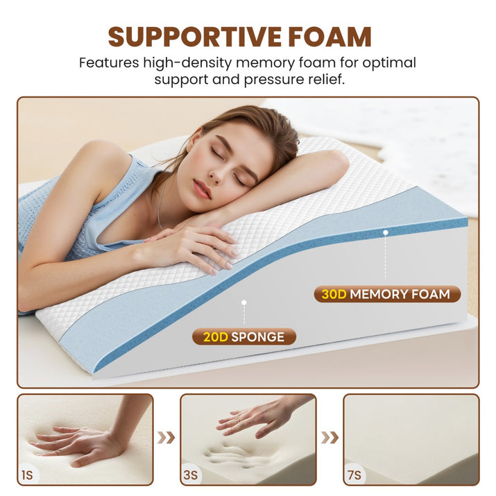 Answer 2: The wedge pillow comes with a removable cover that is machine-washable, making it easy to keep clean. The memory foam core is moisture-resistant, ensuring hygiene and durability with minimal maintenance.